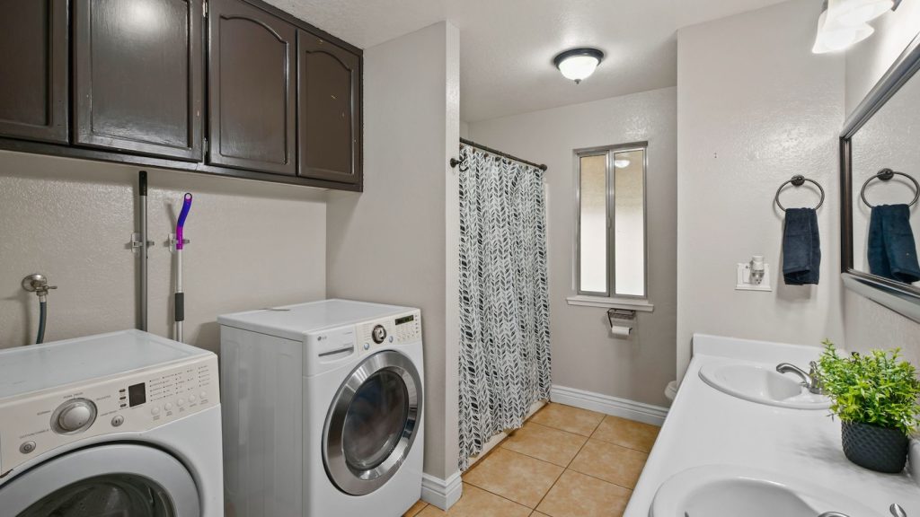 Practical upgrades keep life simple: leased solar for energy efficiency, a roof replaced in 2017, and a washer/dryer included with built-in cabinetry that adds everyday storage where it counts.